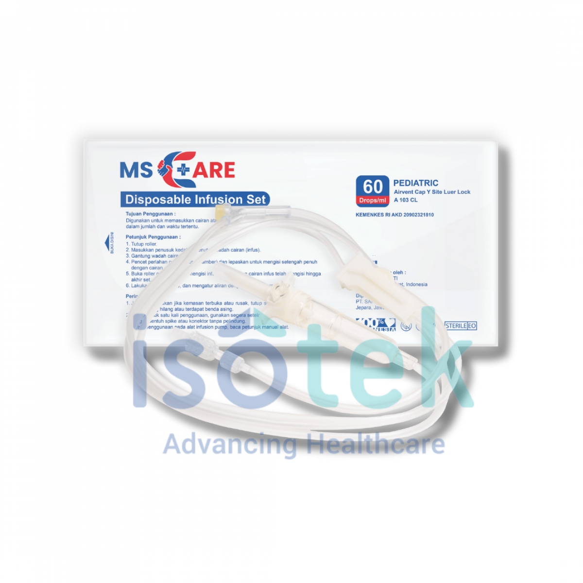 Set Infus Sekali Pakai adalah alat infus yang diproduksi untuk penggunaan pada orang dewasa maupun anak-anak. Dirancang untuk memastikan proses pemberian cairan intravena yang stabil dan aman. Produk ini cocok digunakan di Klinik, Rumah Sakit, Laboratorium, Puskesmas, dan Dinas Kesehatan. PT Isotekindo merupakan distributor resmi produk MS-Care dari PT Muara Sakti.